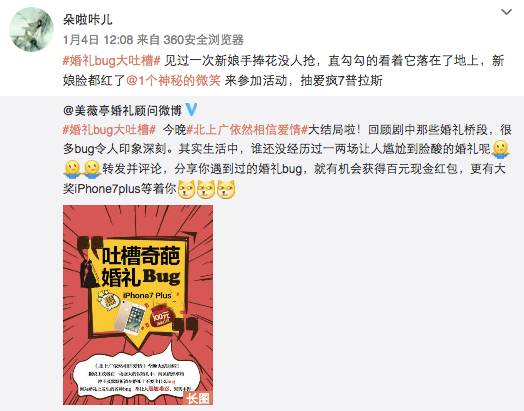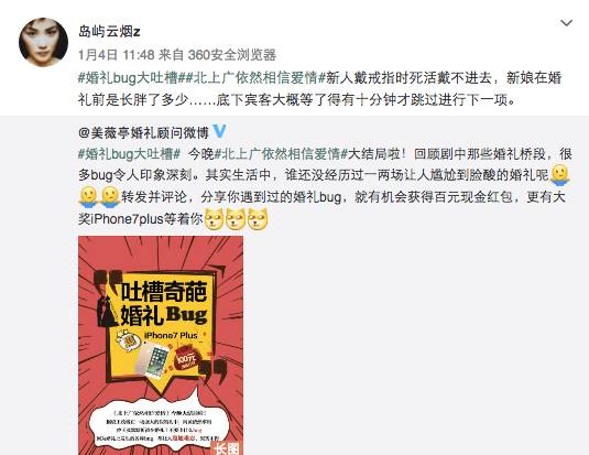 于是剧集结束后,我们也在官方微博上发起了#婚礼bug大吐槽#活动。美姐发现,婚礼策划不专业,生活中的不靠谱远比剧集中还惊人!!今天选取了大家吐槽最多,最具代表的10个婚礼bug进行专业支招,帮你避开办婚礼的那些坑,办零bug婚礼!