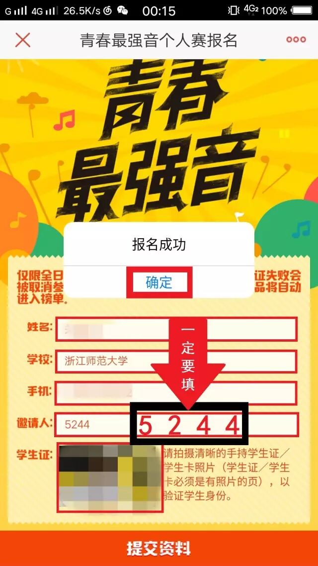 4.填写相关资料“姓名”、“学校”、“手机”、“邀请人”,并上传手持“学生证”的照片。