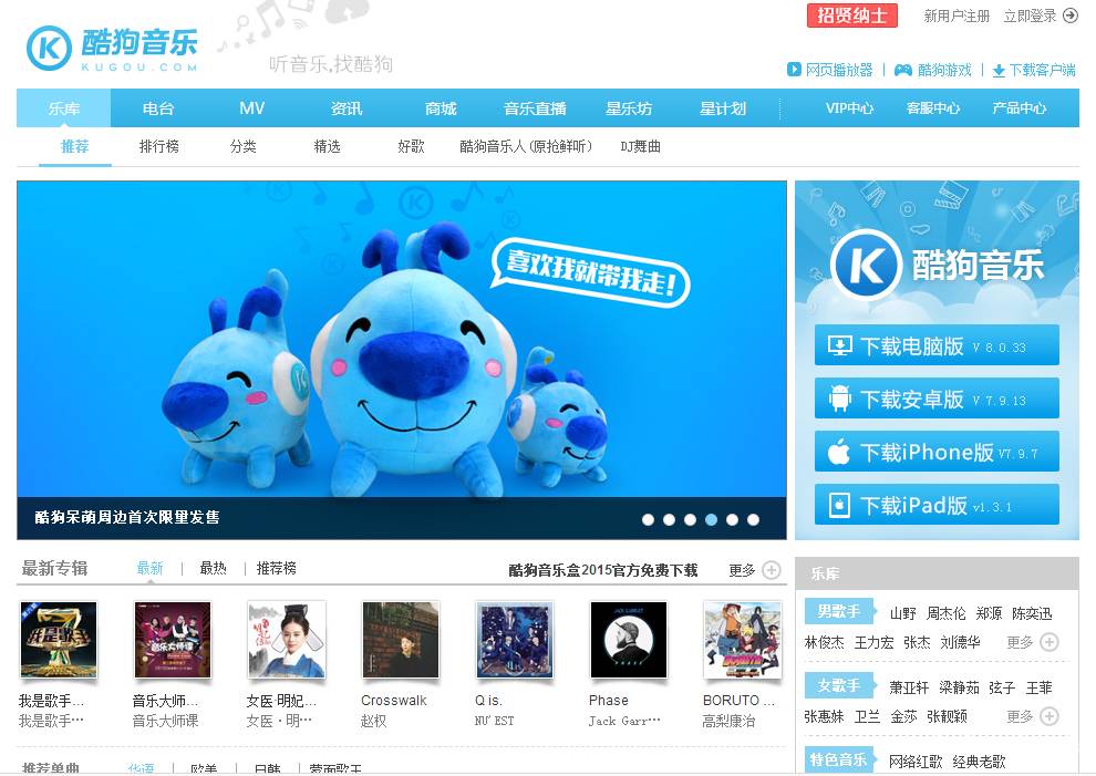 曲库:2000万首(公开数据宣称酷狗酷我共同积累)