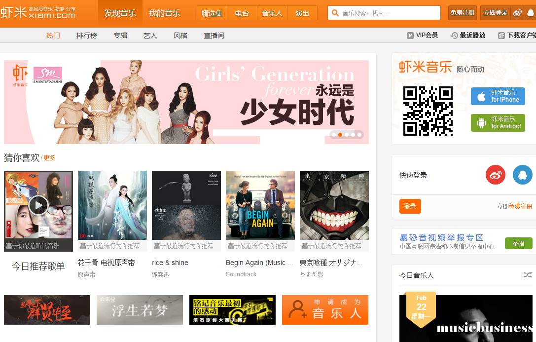对于一个真正的音乐爱好者来说,虾米音乐功能完善且去粗取精。自从它被阿里巴巴收购后,在商业上又开拓了新的方向,紧贴版权意识。例如前段时间签下了韩国S.M公司的独家版权,这看起来有着战略性意义。