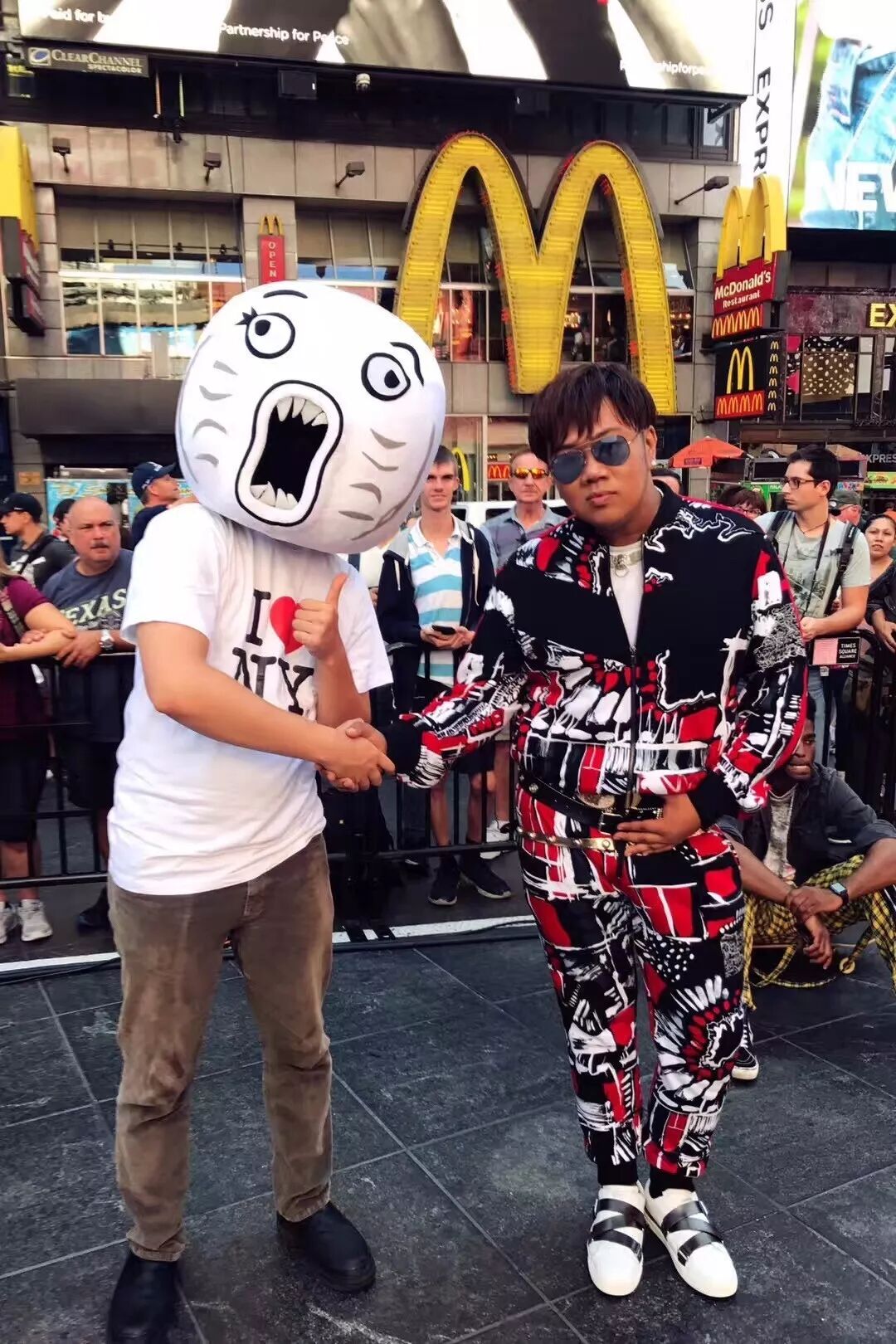 但哥三儿服装的红红火火,衬得时代广场颇有中国年气氛。