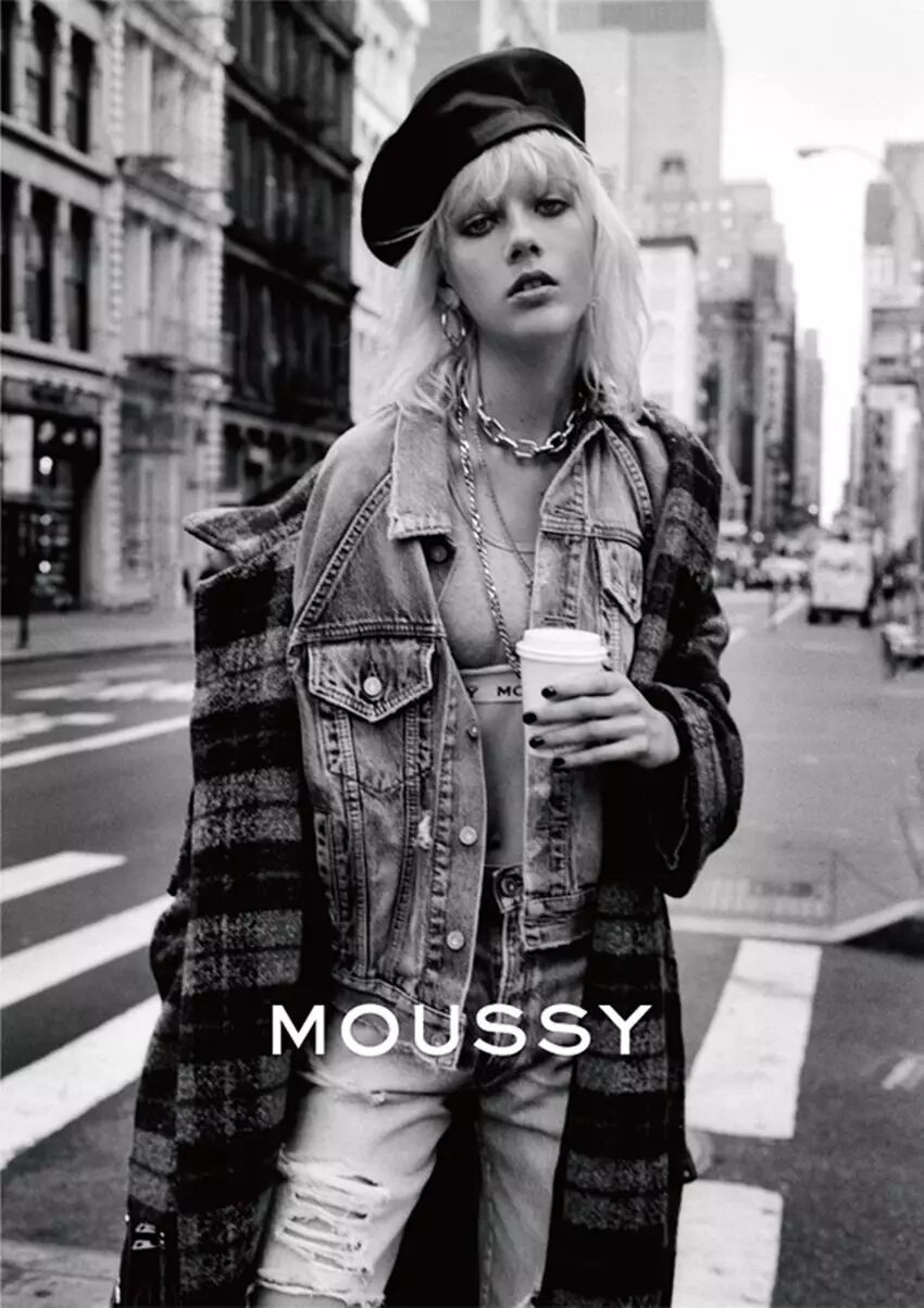 一头醒目的浅金色头发及ROCK的外表,同MOUSSY所打造的女性形象相一致,所以本季决定让Marjan Jonkman 担任秋冬形象模特。