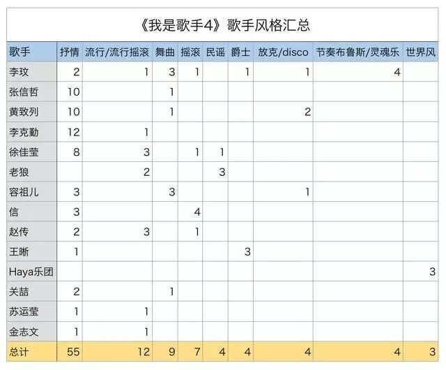 ▲《我是歌手4》歌曲风格汇总