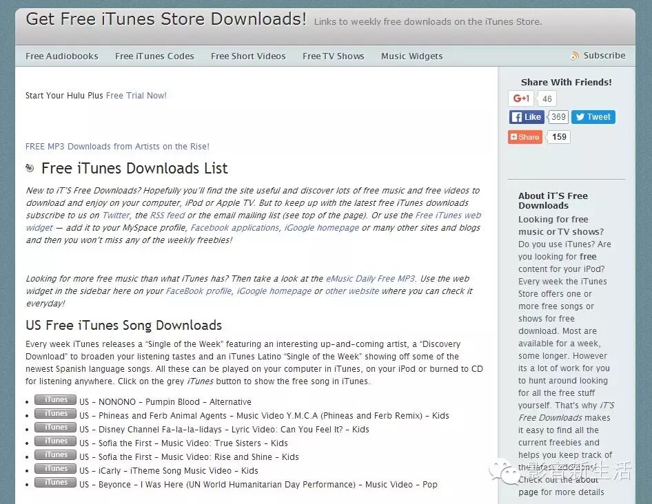 itsfreedownloads对iTunes用户而言是个值得收藏的网站。它提供iTunes每周的免费音乐下载,你也许对它上面的广告很不爽,但是那些免费音乐还是可以缓和你的不满情绪。
