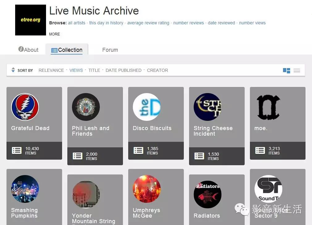 The Internet Archive有一个很巨大的音频部分,包括有声读物当然也有音乐。在下载时要确定你已经看了有150,000 条创作共用许可项目的open source section。