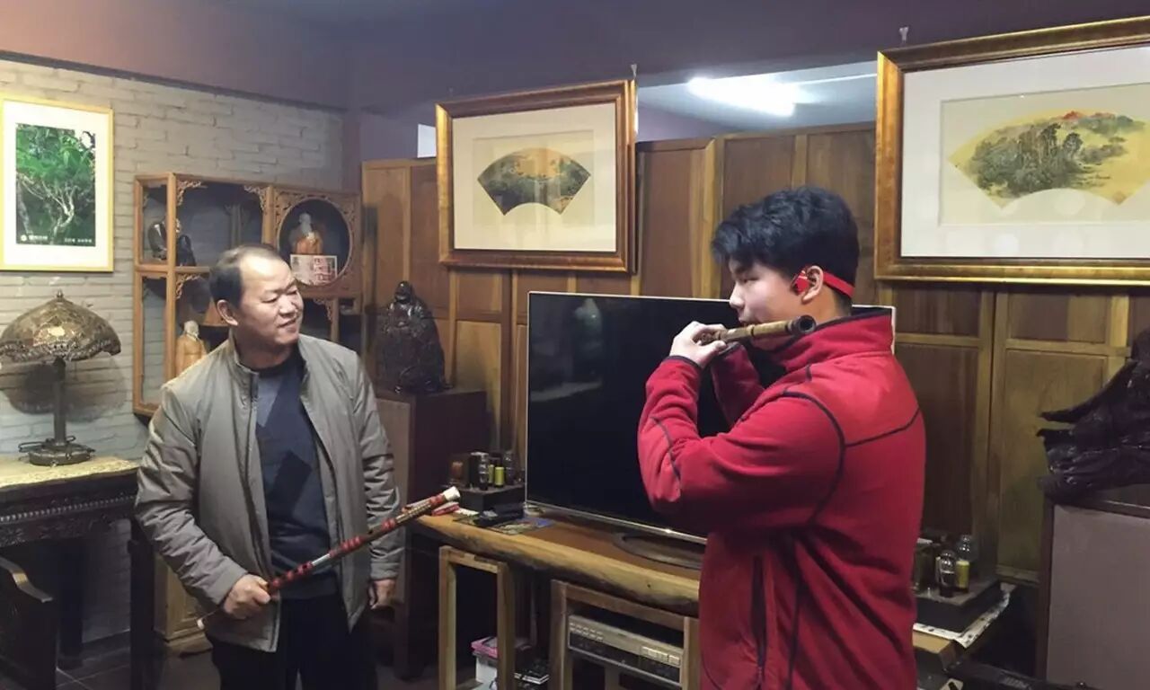 “2008年我的东宝乡情音乐会成功举行后,家乡的老百姓、政府很关心我,就请我回去” 当地政府出资专为他精心建馆,取名“东宝笛馆”,介绍中国笛文化,展出他十多年来精心收藏的竹笛、玉笛、骨笛、弯管笛等数百种笛子。