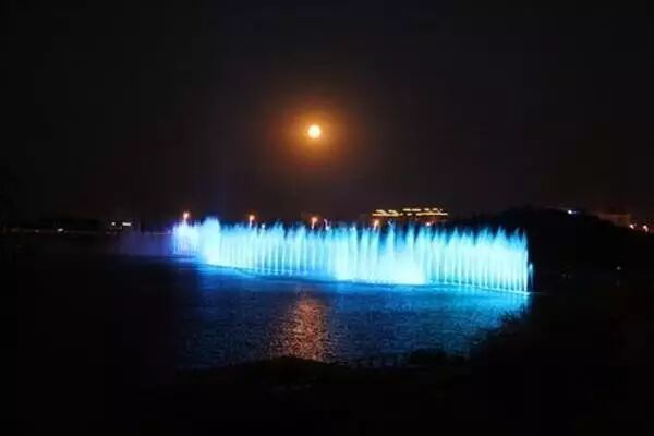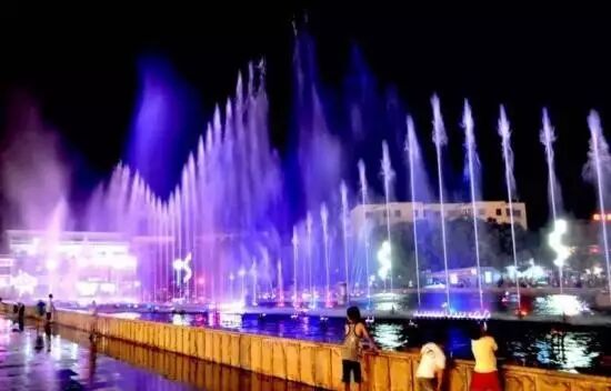不知何时,时而强劲时而舒缓的流行音乐渐次响起,和着音乐的节拍,音乐喷泉时而如莲花盛开,时而如巨蟒吐芯,时而如少女婀娜,时而如银河倒挂,在蔚为壮观的景致中体现着婉约,彰显着大气。