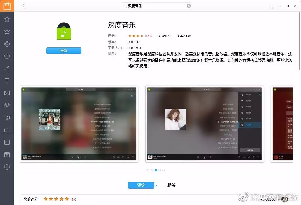 大家可以通过更新系统以获取深度音乐V3.0,或者直接在深度商店搜索下载。