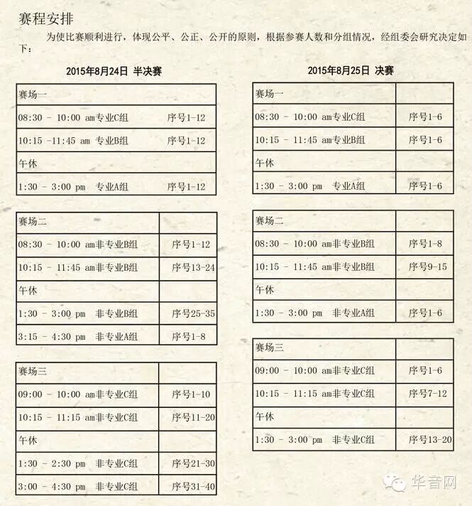 如果说您届时进入决赛,自己什么时候比赛同样可以参考上面的图1、图2来寻找自己报到抽签比赛的时间、地点。