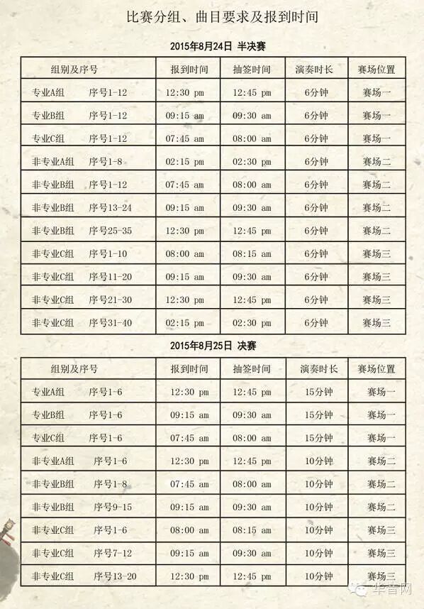 25日的决赛,专业组和非专业组总共的演奏时间是不一样的,请参考上图1的时间规定。超时可能会叫停,但是完全不会影响您的成绩。乐曲的段落截取,可以自行决定。