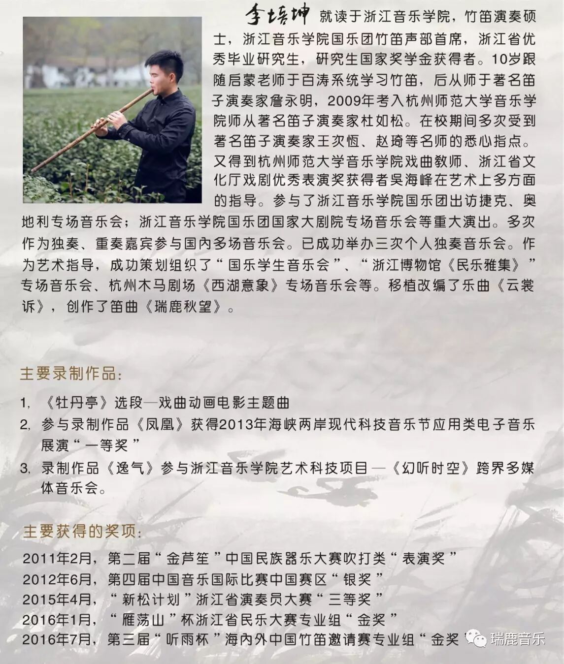 引子开始的第一个中音1呈现出一个清新迷人的江南画面:晨钟在山水间回荡、一阵微风吹来,吹动了杨柳,遍地绿荫,无不透露着一种清新爽朗的空气,身边都被一片绿荫包围。王维的一诗《山中》写到:“山路元无雨,空翠湿人衣。”此处湿身的不是空翠,而是竹笛圆润透亮的音色。仿佛进入到山水画中,满怀兴致的在画中游离了一圈,脱离尘世、通透自然、清新爽朗。古人有大量的诗词描写山水之境,潘阆的《酒泉子》一诗写到“笛声依约芦花里,白鸟成行忽惊起。别来闲整钓鱼竿,思入水云寒。”每次读到此处,画面感油然而生,是雾是山早已分不清。“醉翁之意不在酒,在乎山水之间也”,醉翁欧阳修把情致寄托在了山水之间。张孝祥一诗《念奴娇·过洞庭》中写道:“尽挹西江,细斟北斗,万象为宾客。扣舷独啸,不知今夕何夕!”他把万象(世间万物)比作宾客,自己做东,忘记时间,在洞庭湖上扣舷独啸,更是给了我们一种震撼、感动的情怀。由此可见,这些诗词不仅蕴含着古代文人崇高的文学修养,更表达出古人对山水的迷恋之情。一只毛笔,绘画出万千山水;一种墨色,由浅入深展现天地之间。画中纤细的线条(虚)如竹笛弱奏的音色,在弱奏的基础加上微弱的虚指颤音,仿佛画中“动”起来的水波,又如思绪一般绵绵延长;画中的粗线条(实)如竹笛饱满演奏的音色,如同眼前所看到以及切身感受到的江南景色 。