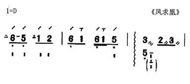 《凤求凰》(谱例5)选自《青莲乐府》,是一首传统文曲。其曲目音色、音量都应该统一在柔、虚、弱的层次上,右手技法上采用龙眼慢弹挑的方法,则声音松、厚。