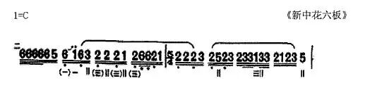 《新中花六板》(谱例8)是一首既有江南丝竹韵味又有江南评弹风格的乐曲。曲调静中有动、慢中有快,音乐轻巧、流动。因此适合运用丝竹弹挑手形。手腕趋平、放松,手指灵活用力,无明显压弦感,声音干净、清快。
