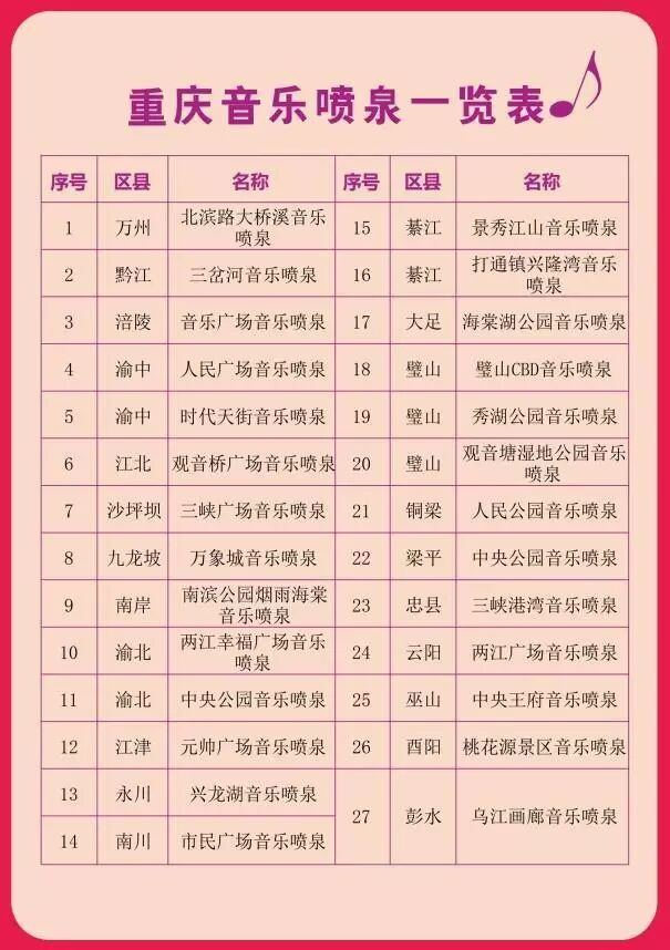 日前重庆市规划局、重庆市地理信息中心推出《重庆音乐喷泉地图》,