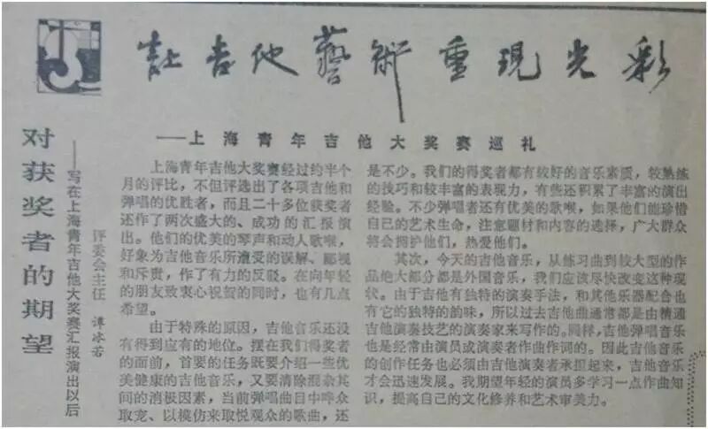,在吉他还被归为黄色乐器的时候,一位文教用品公司的经理找到先生,询问他仓库积压了上万把吉他能不能出售?先生说当然可以,他第一个站出来,发表文章“为吉他正名”。他说:吉他是古老的乐器,可以演奏通俗作品,受到青年人喜爱,更有大量的古典名家名作。无论古典、通俗,专业或是业余。音乐就应该白花齐放、百家争鸣。参与本次音乐会的演奏者有吉他爱好者,也有上海音乐学院的专业吉他教师,同台奏响青春之音。