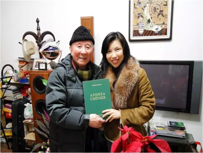 尹立冰,女高音,来自香港。多年前因为先生爱上意大利歌剧,一有机会就专程来上海跟随先生学习。并常举办慈善声乐沙龙,用歌声给需要帮助的人以宽慰。她创立了“香港青年芭蕾舞团”,帮助热爱艺术的年青人提供演艺平台。图为2010年1月,尹立冰赠送先生从意大利带回来的《安德烈谢尼埃》的曲谱。