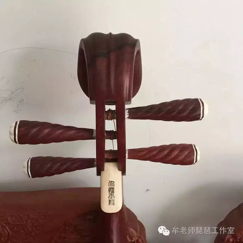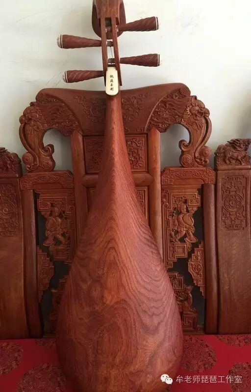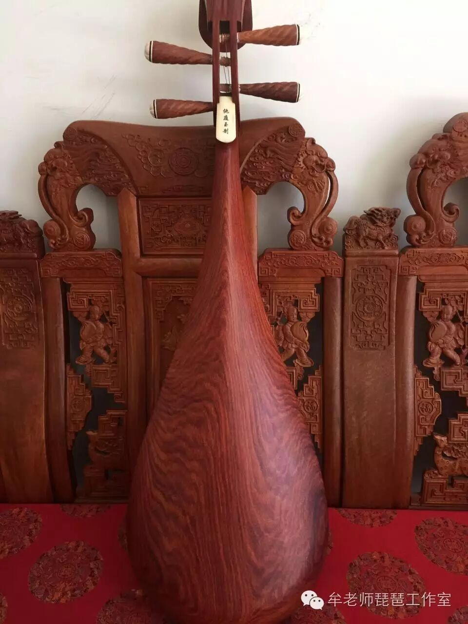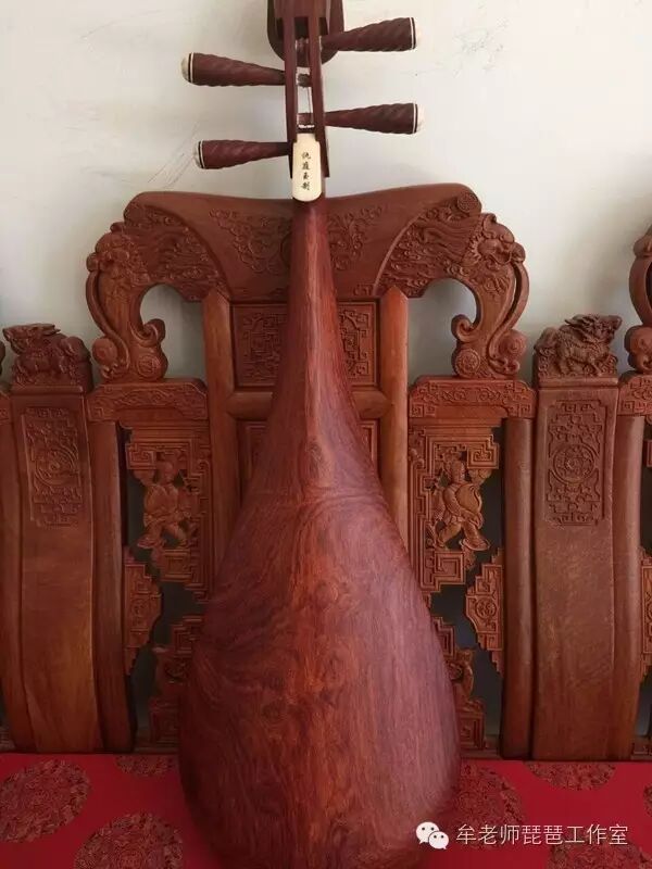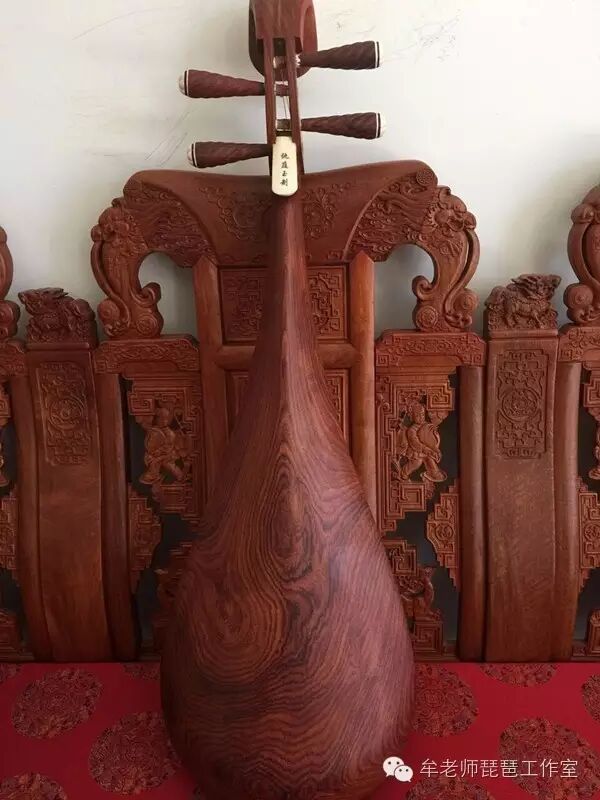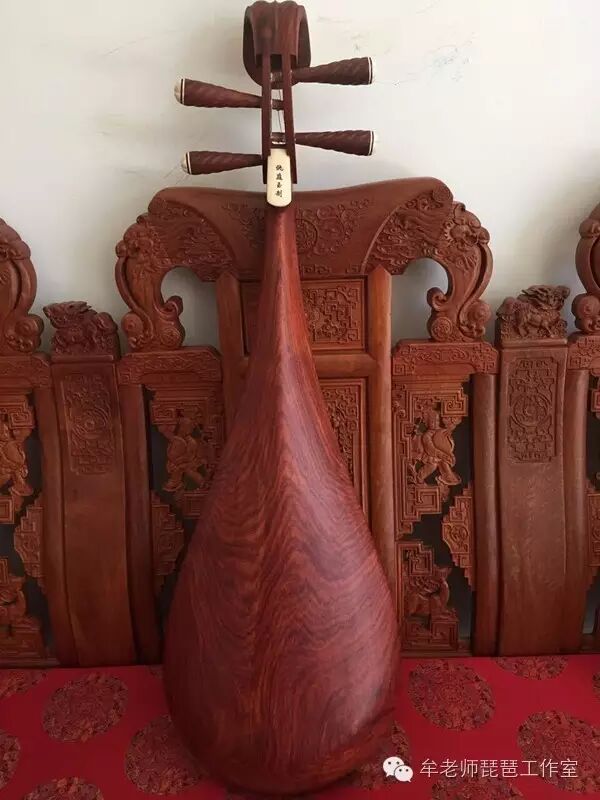 以下图片,为精品酸枝红木琵琶,是由上好的酸枝红木精制而成。红木抛光整木背板(非拼木)酸枝琵琶加上名家制作,不但音色上乘,还具有收藏价值。其音质底音区深沉,浑厚,余音较长;中音区明朗,圆润,柔美;高音区清脆,明亮。深受全国各地琵琶爱好者的好评。仇老师琵琶由中央音乐学院教授张强老师监制。