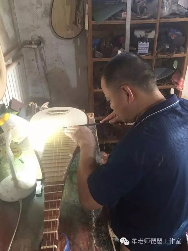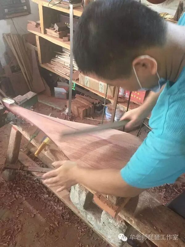 仇师傅制作的琵琶,完全是手工制成,木材是长期自然干燥长达6-15年,材料经过多年的冬季收缩,夏季膨胀过程,所以性能稳定,加上是纯手工精雕细琢的打造,内部结构达到最佳(音梁音柱最佳组合),每把琴最少要6-8年以上才能完工。仇师傅制作的琵琶音质极佳