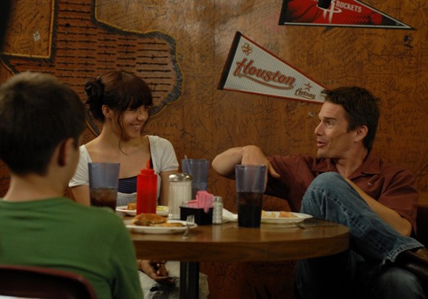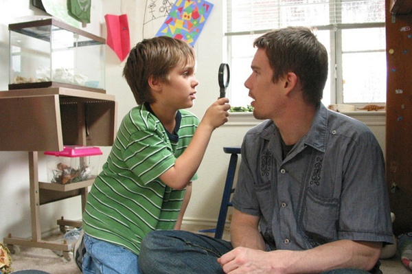 和伊桑·霍克主演的“日出、日落、午夜”系列一样,雕刻时光的《少年时代》也有着充斥全片让人叫绝的台词,这些玩笑和争持仿若就来自观众的床头、厨房、车厢、办公室,点滴琐碎却都带着日常生活的惬意温度。生活阅历固然来为演员带来出色的即兴发挥,但林克莱特坦言剧本甚至台词都是切实存在的,它们是塑形角色的必备条件。为了搭建这样一个典型的离异美国家庭,导演将故事背景置于位处深南方的德州城市奥斯汀,并为小Manson安排了一个长不大的血缘父亲、总在大学和恋爱关系里不停进修的母亲,以及一个早熟的吵闹姐姐。孩子成长发育的很快,除了有一年提前要求艾拉剪去长发外,导演从不去控制他们的体重和兴趣,也只有如此,从少年的形象气质到反映时代气质的流行音乐等一切细节,才能做到合情合理又自然而然。