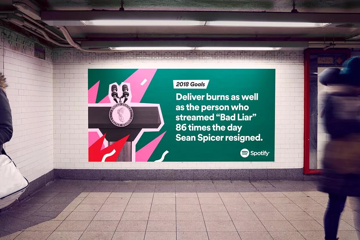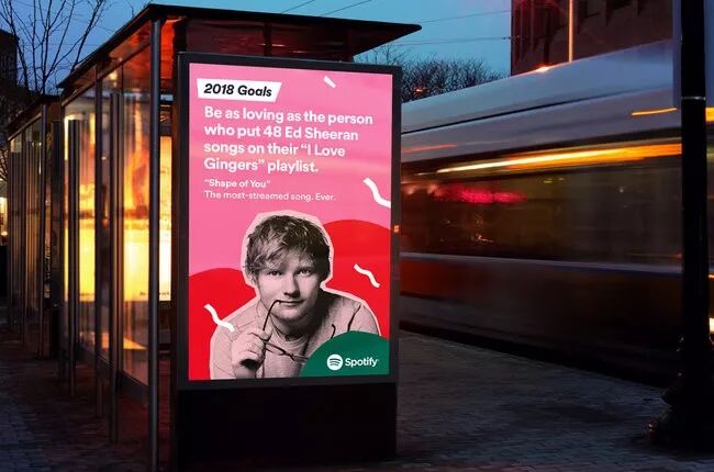 为了能更好地推销自己,11月末,Spotify还曾在纽约街头展开了主题为“2018 Goals”的大规模营销活动,在户外上线了多块广告牌,来推广平台的歌单。同时,Spotify还邀请到包括Ed Sheeran、Sam Smith、Dua Lipa、Julia Michaels、Kendrick Lamar和Bruno Mars在内的超过70名艺人在广告牌上“露脸”,为自己代言。这项营销活动未来预计还将在全球18个市场推出,已确定的美国城市还包括了华盛顿、迈阿密等等。