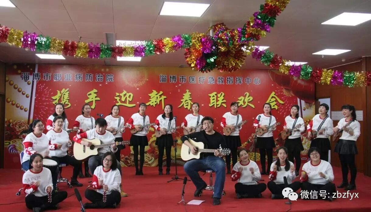 淄博市第六人民医院(市职防院)参加演出的人员共120余人,演出的20多个节目都具有浓浓的喜迎新春的气息,集中体现了亲情和团圆这两大主题。演出伊始,靳毅院长即发表了热情洋溢的致辞。7位院领导和部分职工一起登台,,为演出加油助兴。整场演出通过舞蹈、弹唱、相声、小品、三句半、诗朗诵、器乐演奏等精彩纷呈的节目形式,赞美了医院蓬勃发展的气象,抒发了心中的喜悦和豪情,展现了干部职工积极向上的精神面貌。