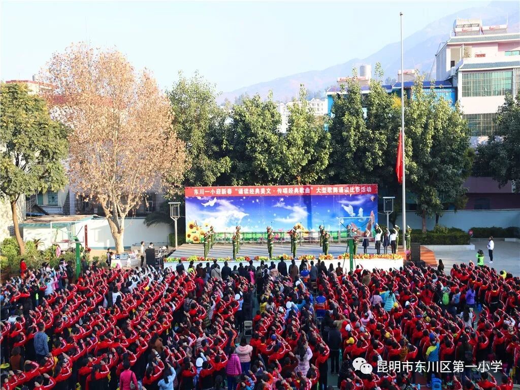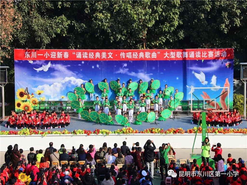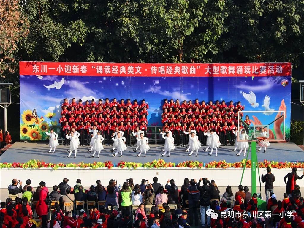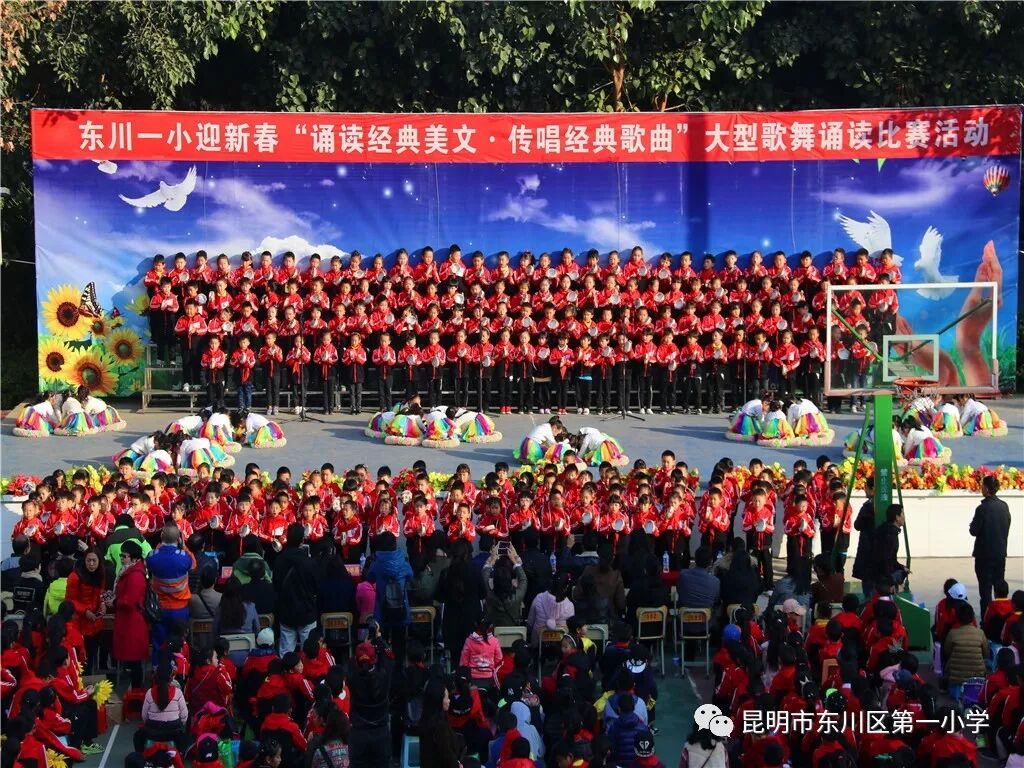 2017年12 月29 日上午东川一小全校师生和部分家长在学校操场开展迎新春“诵读经典美文、传唱经典歌曲”大型歌舞诵读比赛活动。