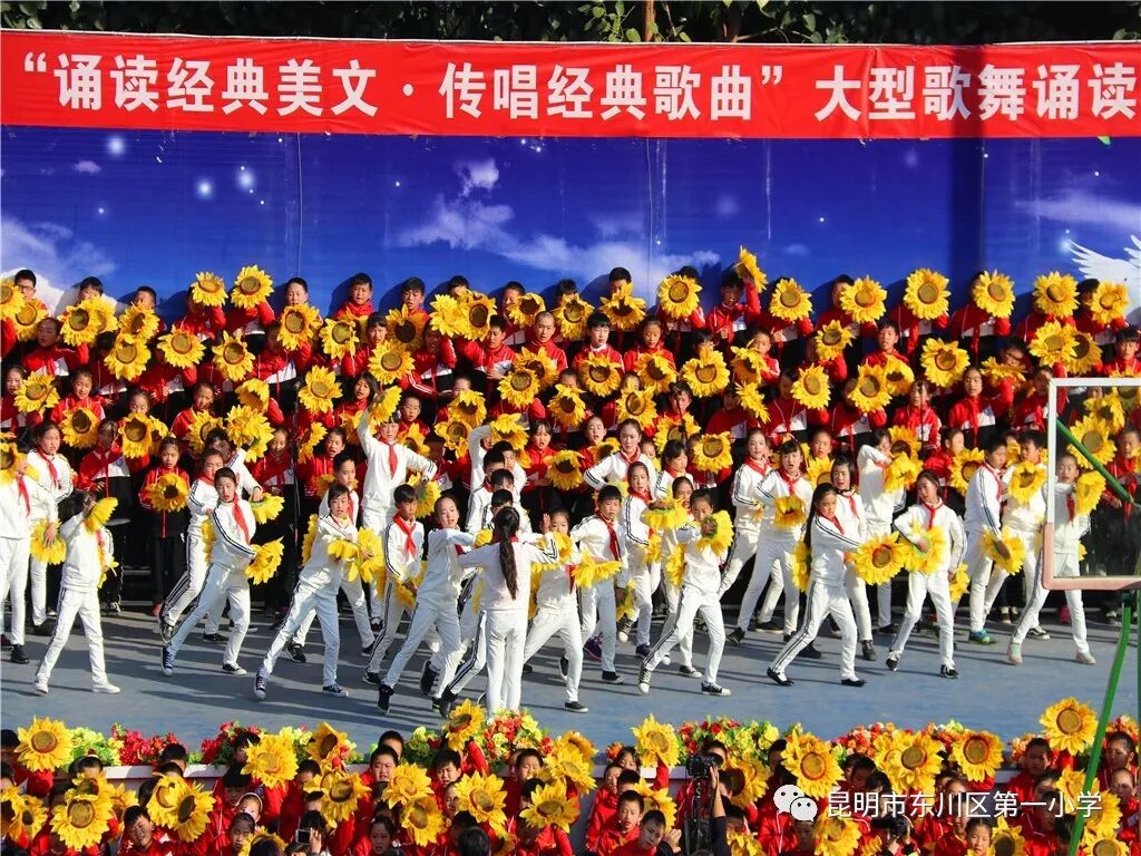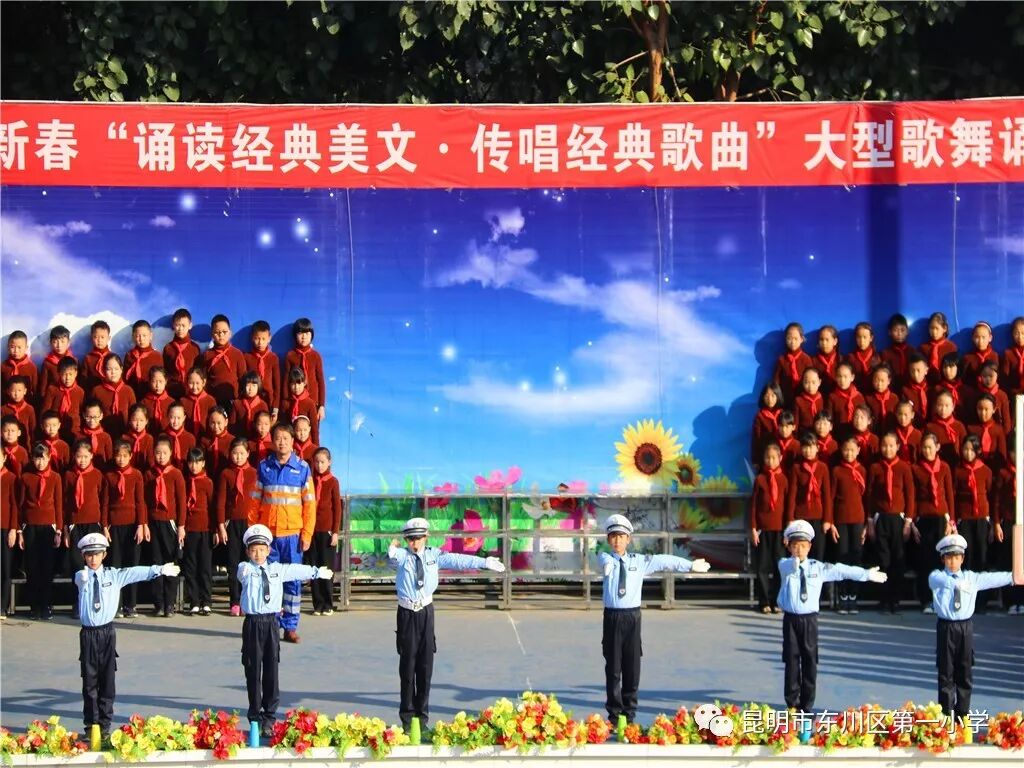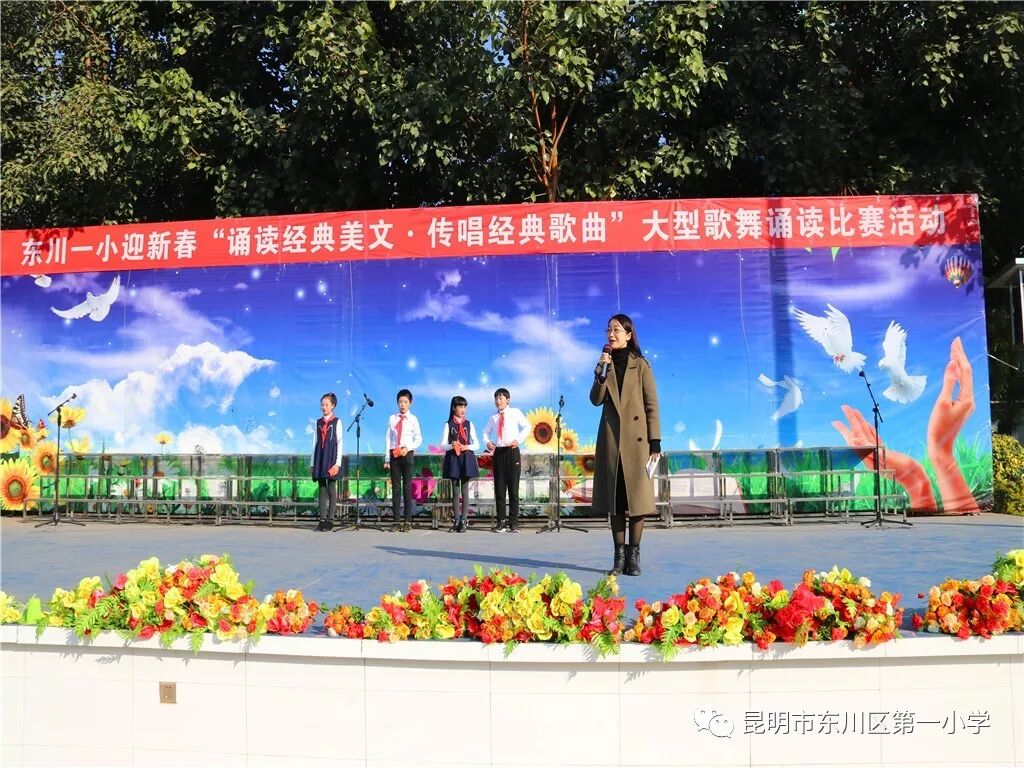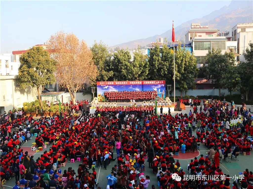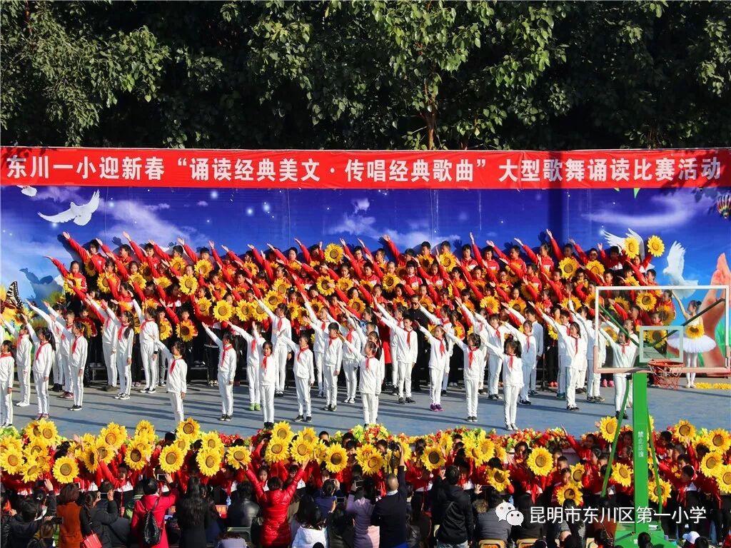 2017年12 月29 日上午东川一小全校师生和部分家长在学校操场开展迎新春“诵读经典美文、传唱经典歌曲”大型歌舞诵读比赛活动。