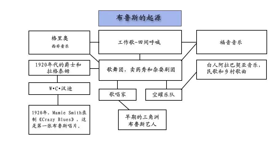 听了几年布鲁斯,自己一直是东一榔头西一棒槌,有时更是狗熊掰棒子,结果自己没能形成一个完整的知识体系,对布鲁斯音乐有一个完整的认识,所以打算好好补一补课。几年前买了一本《All Music Guide to the Blues》,里面按照字母排序介绍歌手生平,还有专辑推荐。虽然在2002年推出第三版后一直没有新版问世,但对我来说也是非常不错的一本工具书了,遇到不认识的乐手就拿出来查一查。买了几年,一直没能全部读过。这本书后面的附录其实对布鲁斯做了全面的介绍,每一篇文章还有一张图表,可以清楚地了解布鲁斯的形成、发展。我打算一边读一边翻译出来,和大家分享。附录的内容包括: