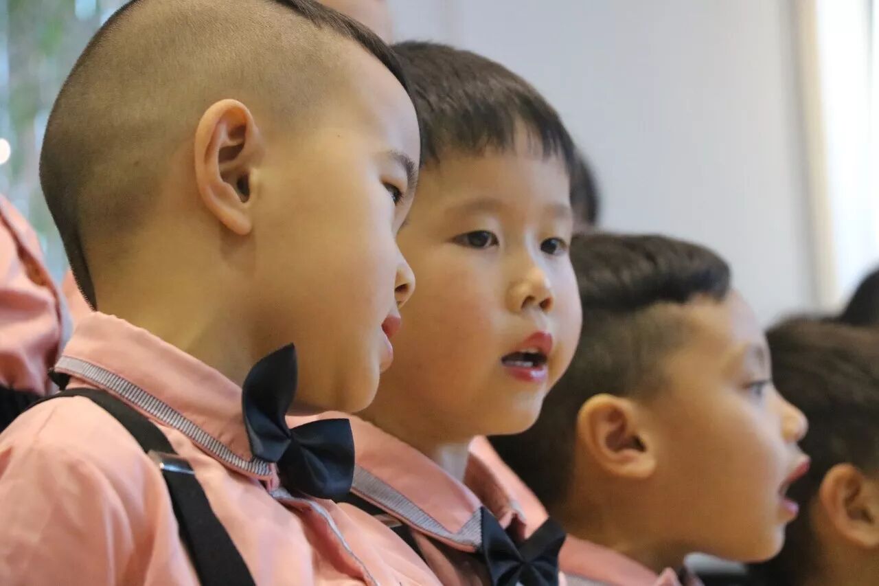 在华夏未来社会山双语幼儿园的活动室中,悠扬的歌声传出来,孩子们童真的声音,可爱的表演赢得了阵阵掌声。家长们整齐生动的合唱仿佛回到了童年时代。