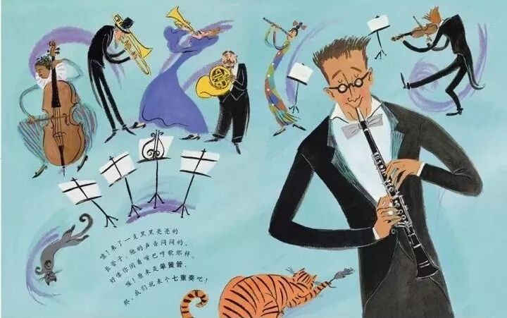 嘘!来了一支黑亮亮的长管子。他的声音闷闷的,好像你闭着嘴巴哼歌拿样。喔!原来是单簧管,那,我们就来个七重奏吧!