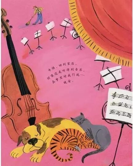 弦乐器像在哼唱一首完美的诗,木管乐器温柔得像一只绵羊,铜管乐器好像刚吃饱,特别有力气。啦!啦!啦!所有的乐器一起奏出美妙的旋律。