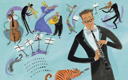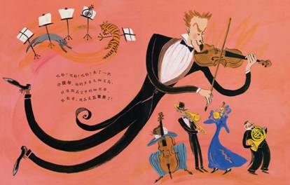 和他所演奏的乐器在造型上相互配合呼应,