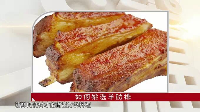本期舌尖教您怎样选新鲜的羊肋排,首先看颜色,新鲜羊肉的颜色明亮而且呈红色,其次是手感,新鲜的羊肉用手摸起来感觉肉质紧密,表面微干或略显湿润而且不黏手。最后是按压,按下后的凹印可以迅速恢复的是新鲜羊肉,另外闻起来没有腥臭味的羊肉才是新鲜的。