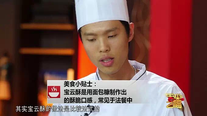 宝云酥其实是用面包糠等材料制作出来的酥脆口感,是法式料理中常用的做法,今天林大厨就用它跟羊肋排搭配。