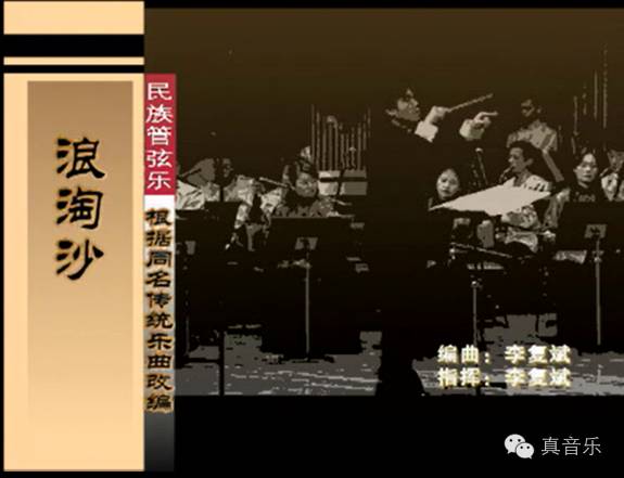 《浪淘沙》以"合乙七"(5 7 6)三个音作为主题象声,并以它贯穿全曲,又加曲速三度,使旋律起伏跌宕,宛如大浪淘沙。似赞美祖国壮丽河山,缅怀古代英雄人物,以抒发人生须经风浪淘洗,净化心灵的情怀。