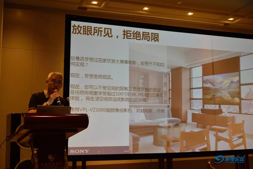 本次展示活动的影音技术顾问王若波老师,特别为大家详细分析和介绍了4K超高清视频画面和Sony超短焦产品 VZ1000投影机的技术特性,吸引了很多关注超高清画面爱好者的兴趣。