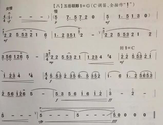 此曲以黄山为纲,黄梅戏曲调为内容,与安徽二黄元素有机结合,渲染了地方音乐艺术特色。乐曲为多段式结构,分为“曦抚群巅”“奇松邀客”“天都仙会”“云雾叠嶂”“玉屏听雨”“空谷幽韵”“仙境乐舞”“五岳朝黟(yi)”八个部分。使用G调低音笛、C调曲笛和G调梆笛演奏,曲韵优美、流畅,悉心聆听品味,会使人产生许多对自然,对人生的奇妙感悟和无限遐想。请慢慢欣赏。。。