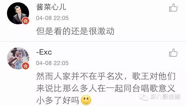 公众号"深八影视圈"的作者写道:二十年过去了,还活着的摇滚老炮儿们,有人成仙了,有人疯癫了,有人隐退歌坛,有人大红大紫。不管怎么样,他们终于一起站上了这个舞台,唱出了一个时代。车祸也好,狼藉也罢,只要我们还能唱歌,就值得庆幸。
