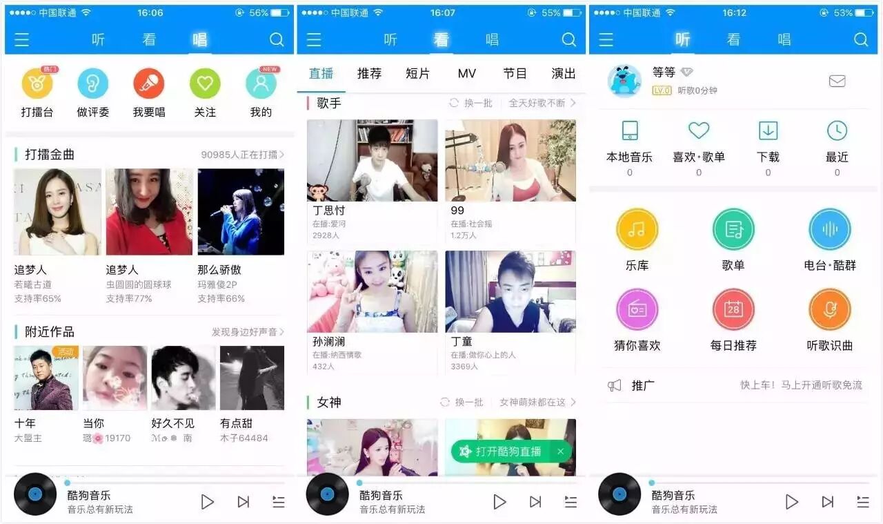 利用庞大的用户基数,酷狗音乐由纯粹的听歌软件转化为集合唱歌直播,功能齐全的一众全新的音乐方式,挖掘音乐软件的更大可能。在播放器品牌同质化问题严重的今天,酷狗音乐以别具一格的方式破局,也由此笼络了更多用户,用户粘性也得到提升。