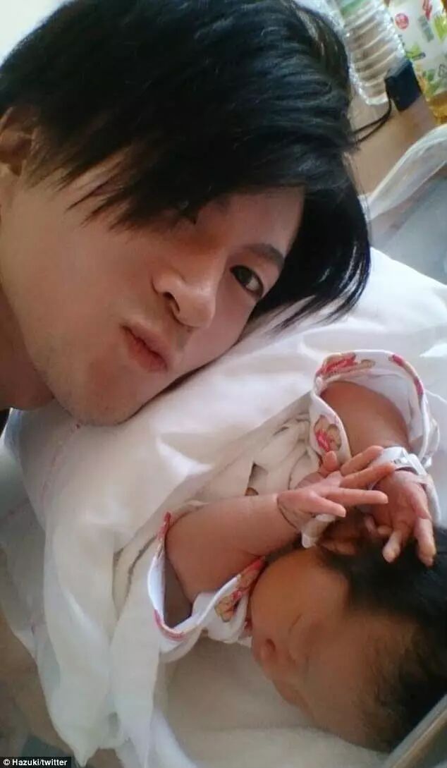 都说“虎父无犬子”,日本乐团Lynch的主唱叶月po出一张女儿刚出生时的照片,2周大的宝宝,摆出摇滚 “魔鬼角”手势。she will rock you~