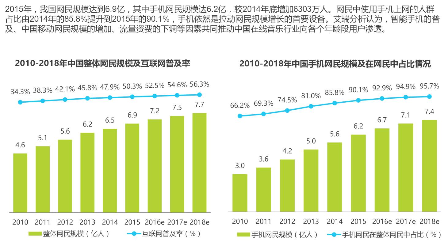 社会模式:随着智能手机的普及,流量资费下调,日益庞大的网民规模也给在线音乐发展奠定了用户基础。
