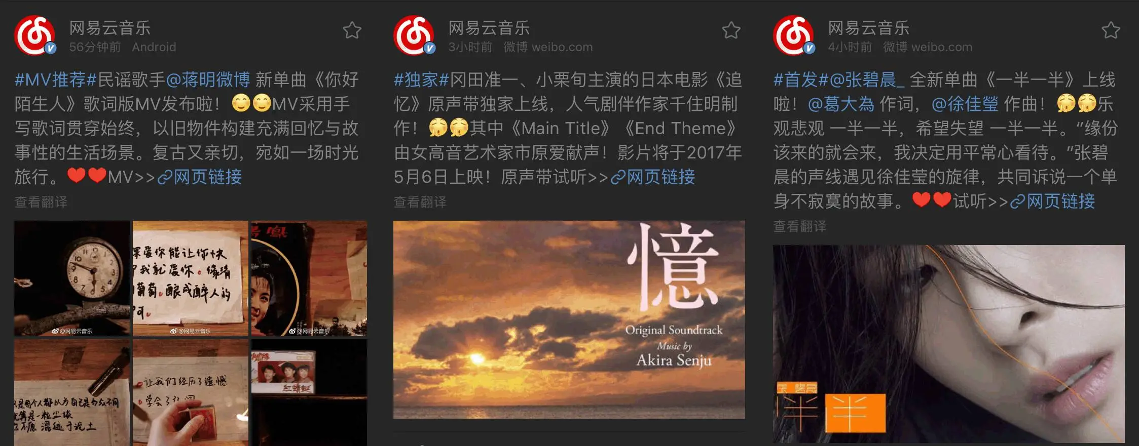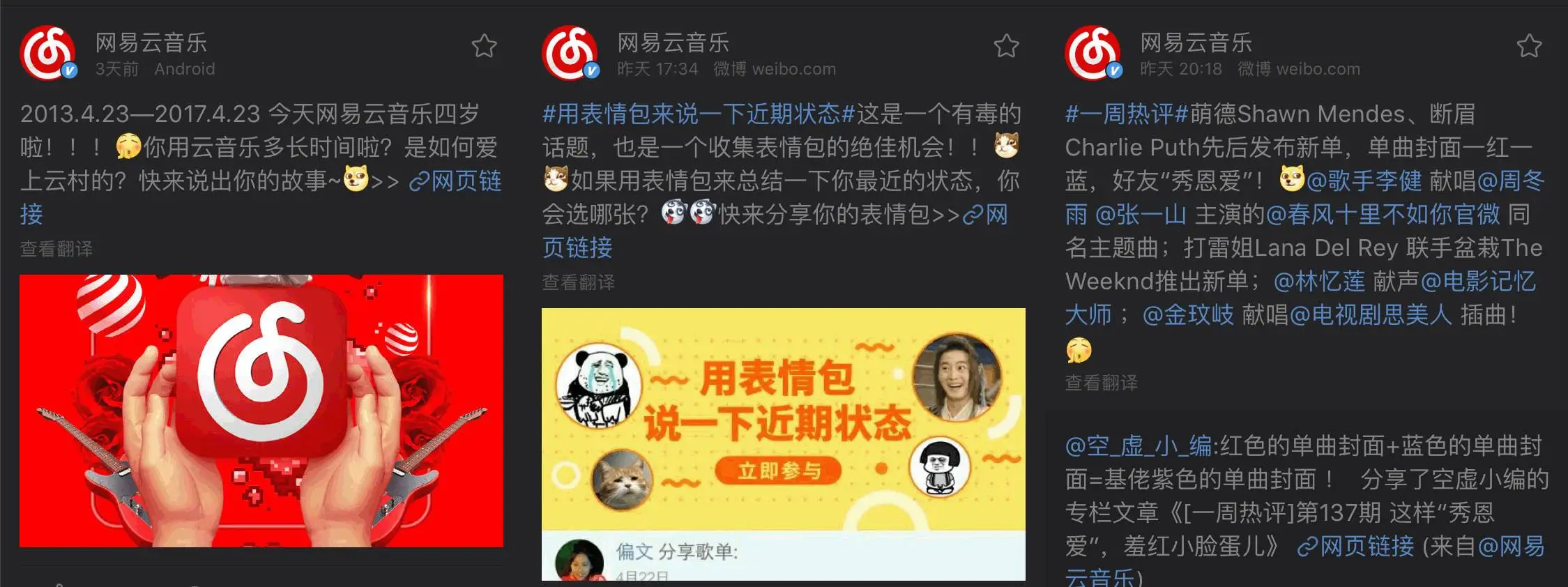 网易云音乐官方微博的推广: