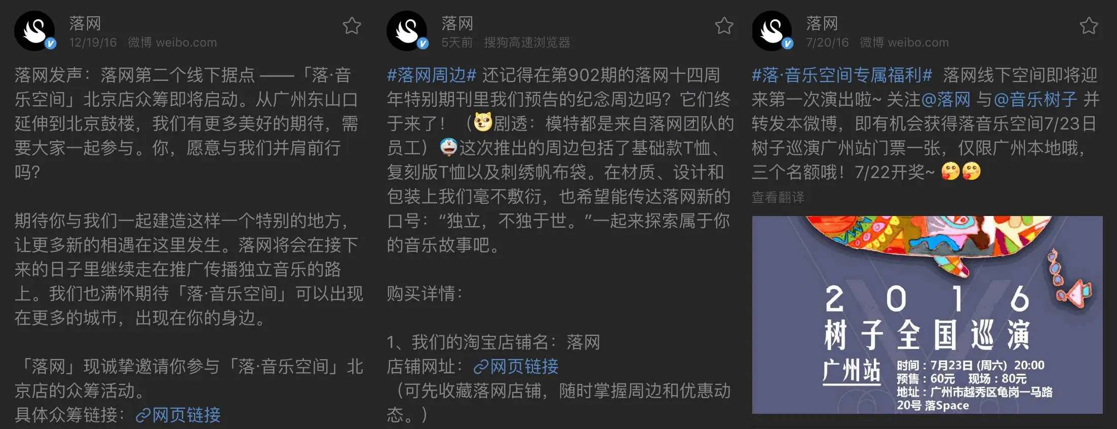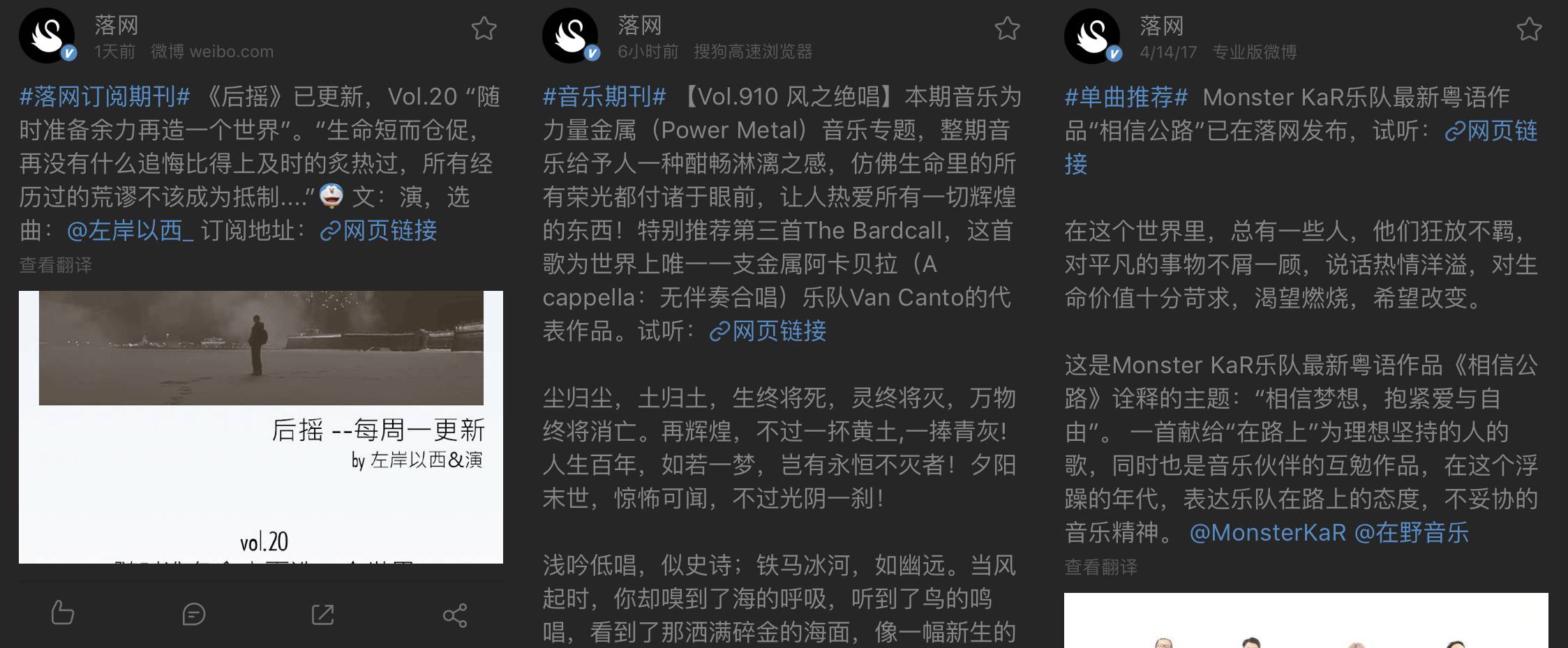 落网官方微博的推广:
