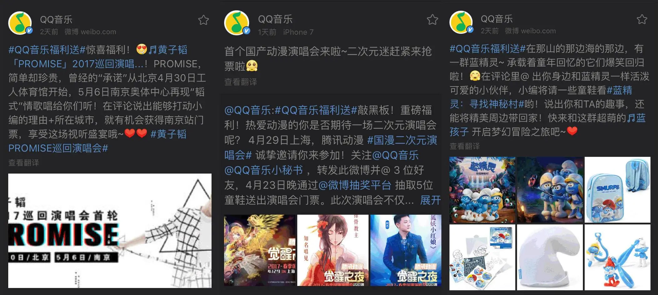 QQ音乐官方微博的推广: