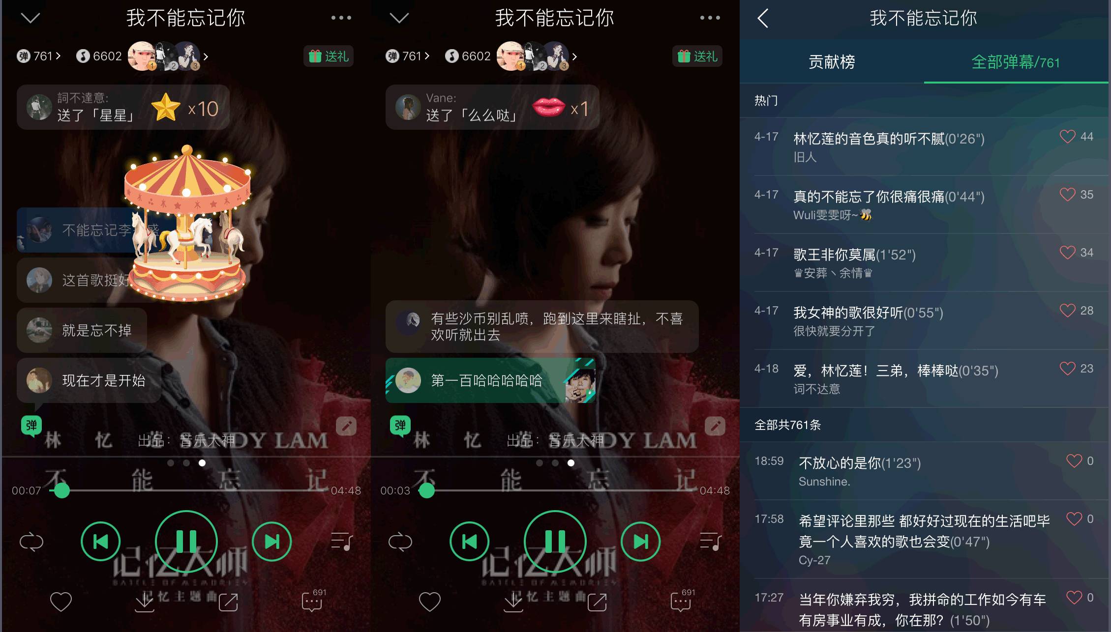 QQ音乐的评论形式主要是弹幕+送礼,类似于直播交流的形式,不过查看弹幕列表也无法寻找到发送弹幕的人。
