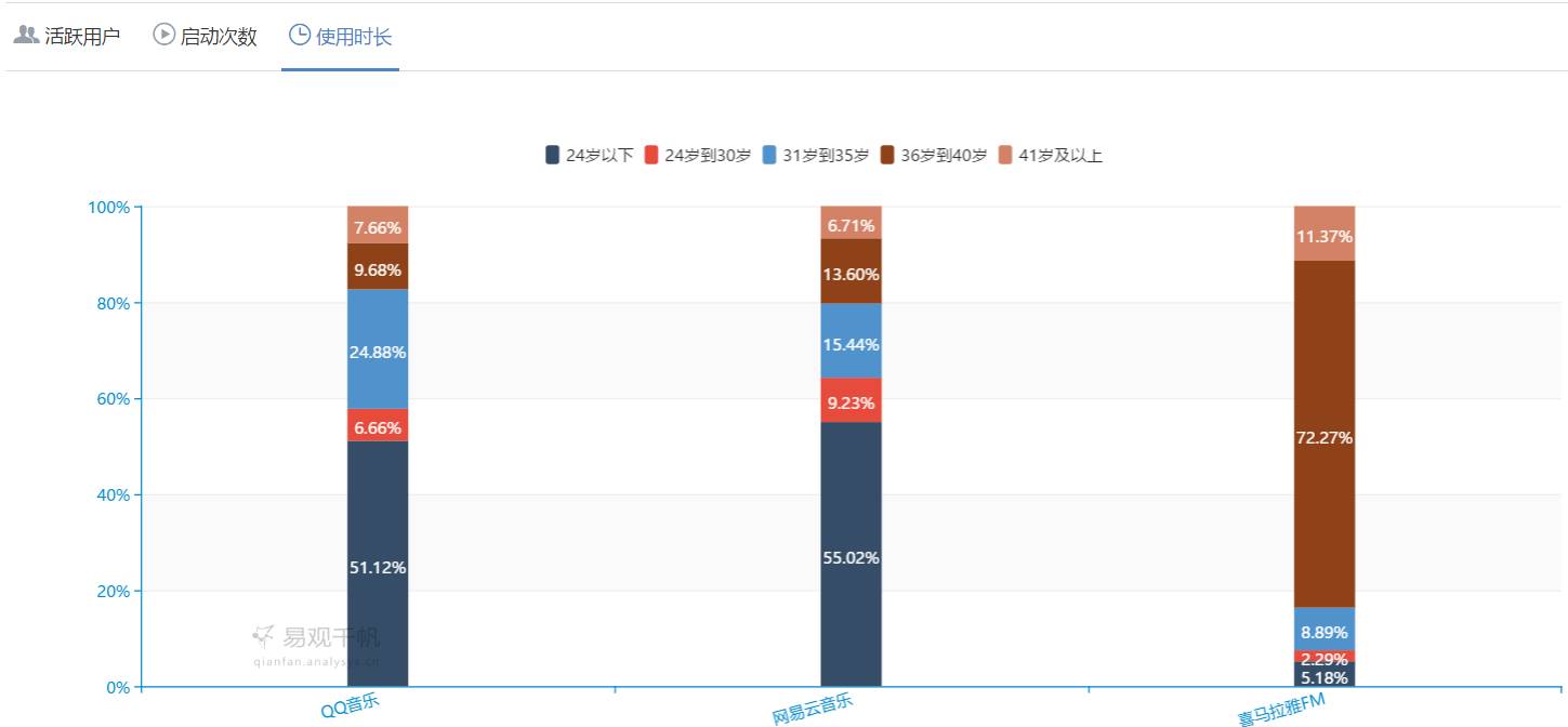 使用时长用户年龄分布对比(来源:易观千帆)