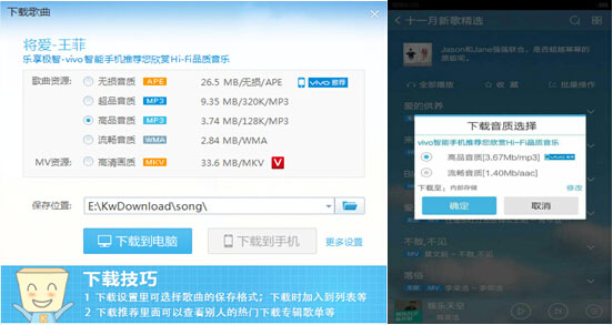 酷我音乐日前与vivo智能手机合作:结合酷我音乐的海量无损音质曲库、亿万级的用户基础以及vivo智能手机的Hi-Fi音效等优质资源,共同推动无损高音质正版音乐的普及。