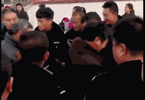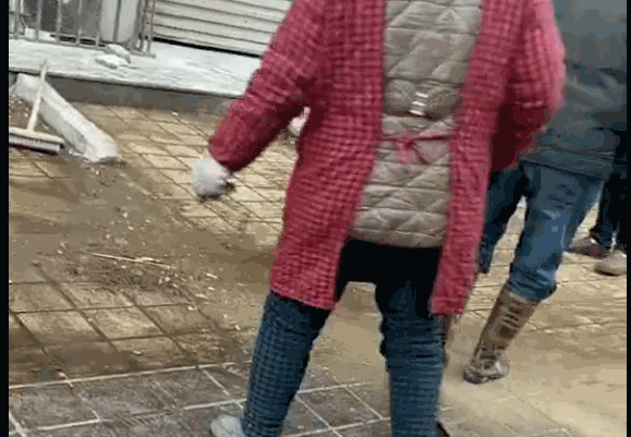▼广场楼下地面是黑色油乎乎的,走过时粘脚,终于有人清理了