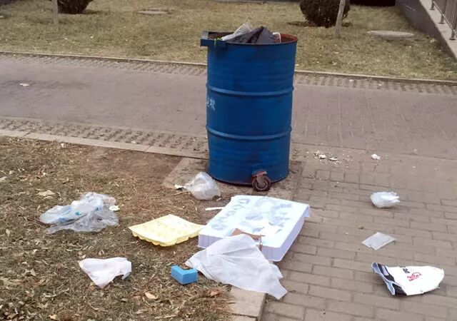 ▼凤凰春城一期垃圾满地,垃圾桶成摆设了