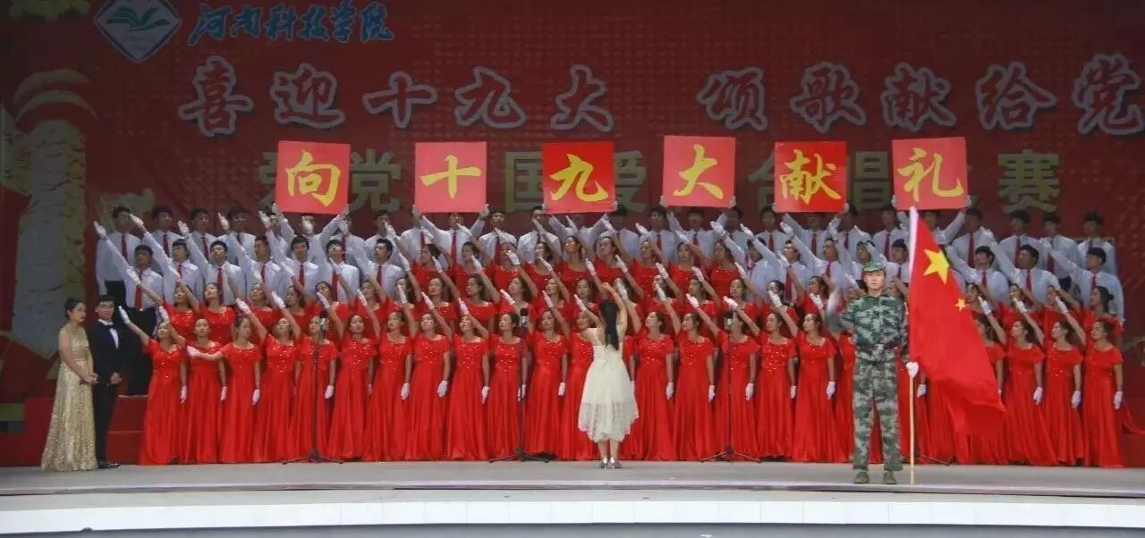 为激发青年学子的爱党爱国爱校情怀,以浓厚喜庆氛围迎接党的十九大胜利召开,10月15日下午,由党委宣传部、党委学工部、校团委主办的“喜迎十九大 颂歌献给党”爱党爱国爱校合唱比赛在学校西操场隆重举行。